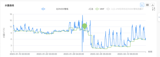 在DMA供水分區(qū)管理系統(tǒng)中,通過夜間小流量實(shí)時(shí)監(jiān)測,監(jiān)控管網(wǎng)漏點(diǎn),2022年交付項(xiàng)目中共計(jì)監(jiān)測漏點(diǎn)千余處,有效降低產(chǎn)銷差3-5個百分點(diǎn);