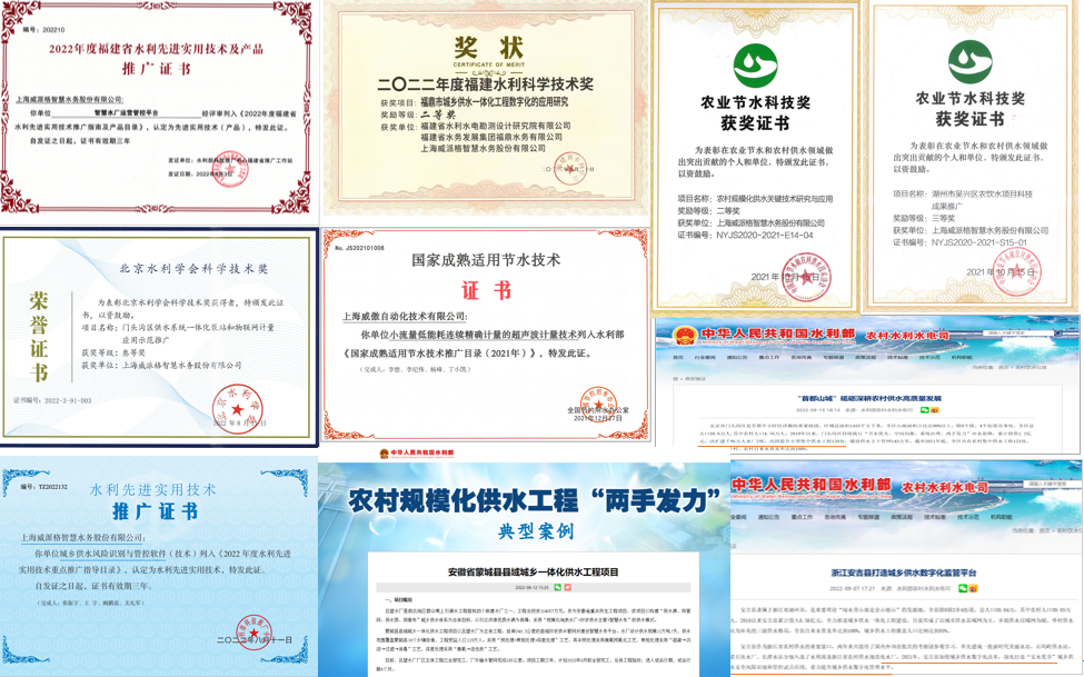 在2022年,威派格榮獲水利行業(yè)多個國家級和省級獎項: