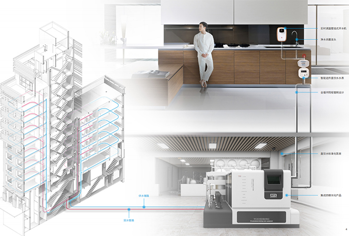 新建一套標(biāo)準(zhǔn)化泵房,通過高標(biāo)準(zhǔn)泵房、高品質(zhì)設(shè)備為客戶提供展示效果,提高百姓對管道直飲水的信任度;通過智慧化管理與展示,讓客戶直觀了解到設(shè)備運行狀態(tài)、水質(zhì)狀況等,打消百姓顧慮,提高樓盤品質(zhì)。